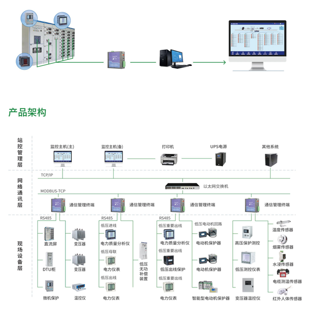智慧电力监控系统是针对0.4kV-10kV的配电室开发的综合监控系统,可对中低压配电柜、直流屏、微机保护装置、变压器、UPS电源、电动机组等多种变配电设备进行全方位的监控,为配电系统的实时数据采集、开关状态检测及远程控制提供了基础平台,协助运维人员快速故障分析、定位和排除问题,帮助企业提高供电可靠性、降低运营成本、提高生产效率,加快供配电过程中异常的反应速度。系统适用于数据中心、大型公建、大型医院、商业广场、石油化工、机场轨交等配电室的电力监控。
