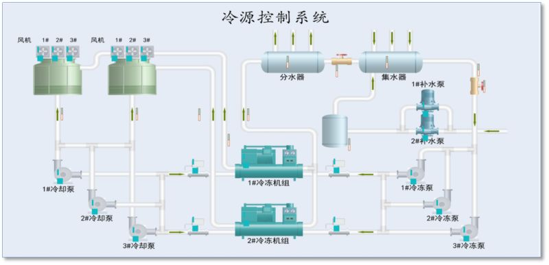 中央空调节能控制系统对空调水系统采用自适应模糊优化算法实现系统效率最佳控制。