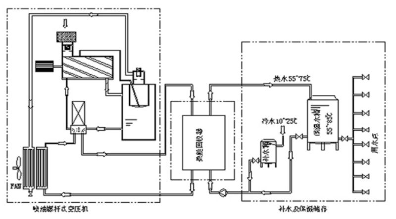 原理:回收空压机冷却水,集中到蓄水池。通过板换回收余热。